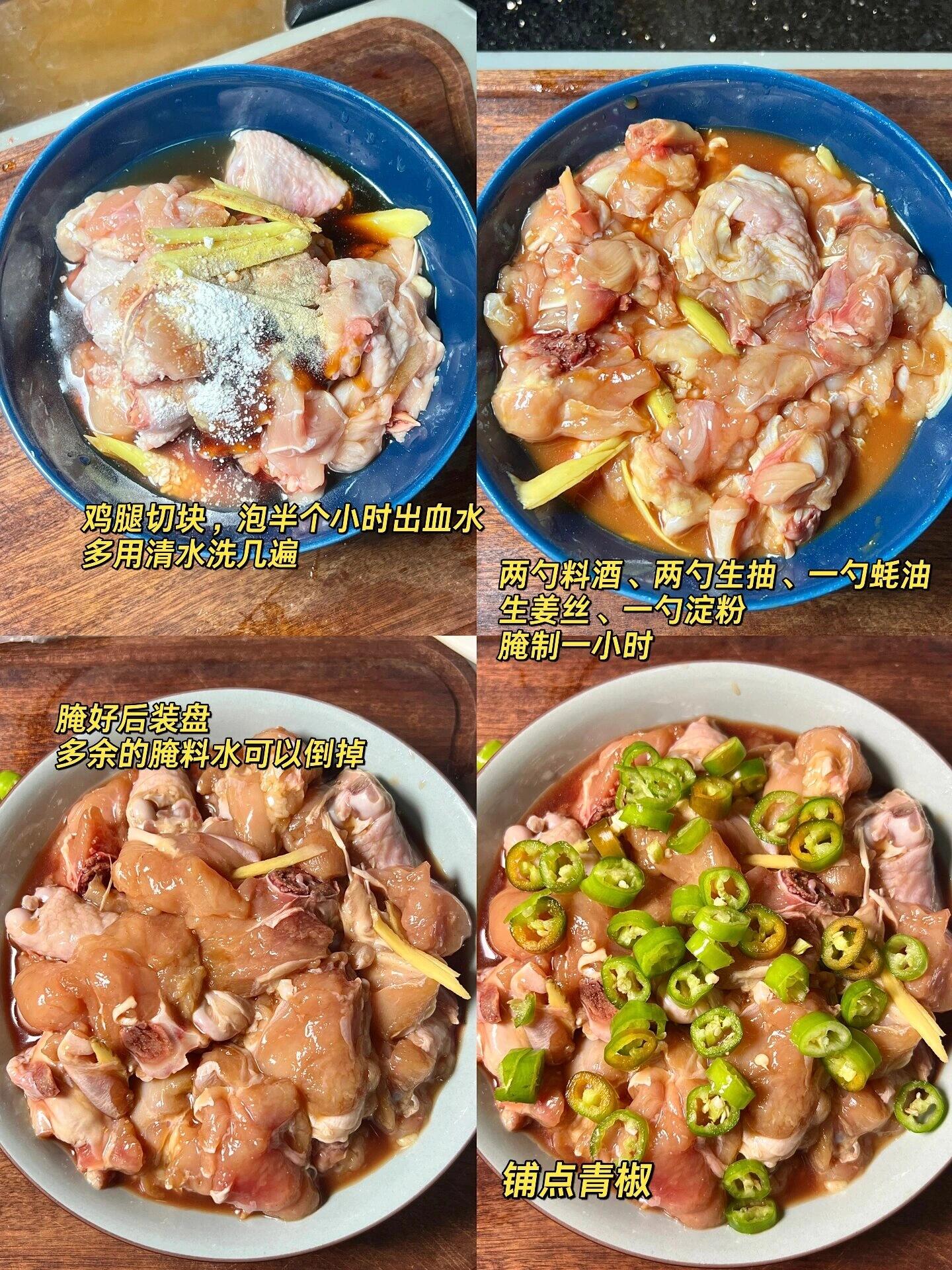 接下来是鸡肉的处理步骤,这可是制作双椒鸡的关键。将鸡腿肉切成适中的块状后,放入清水中浸泡半小时,让鸡肉中的血水充分渗出。这一步能有效去除鸡肉的腥味,提升菜品的鲜美度。浸泡好的鸡肉要用清水冲洗几遍,确保血水去除干净。
