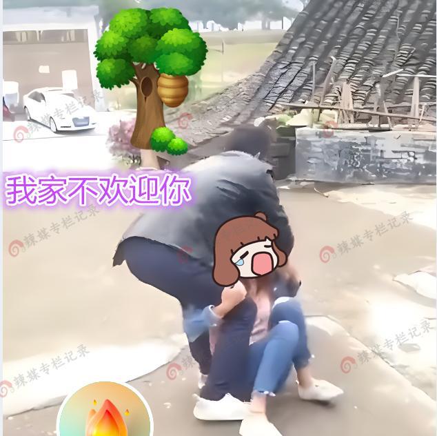 丈夫一边教训妻子,一边把妻子拖出门,女子抱住丈夫不放手,后来丈夫用力挣脱了女子的手,将女子留在原地,自己回家了!