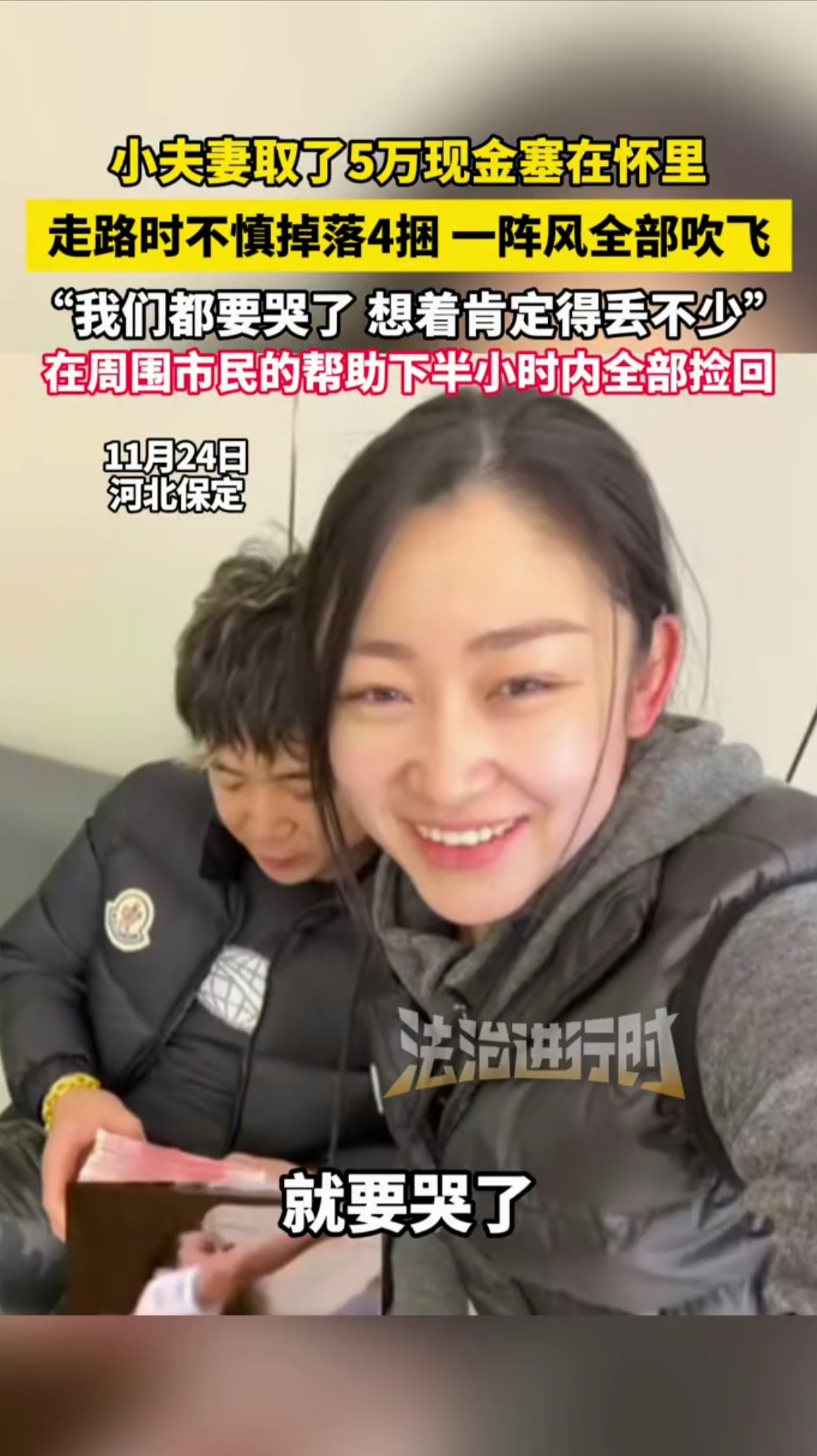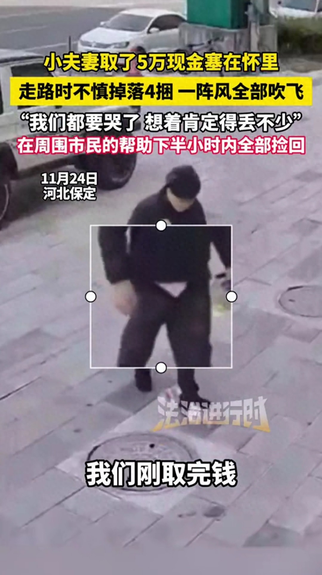 河北保定街头,一阵突如其来的大风,让徐先生夫妇刚从银行取出的4万元现金瞬间四散纷飞,有的顺着街道飘出1公里,有的钻进绿化带,有的落在车流中。夫妻俩当场懵在原地,手忙脚乱地去捡,徐先生死死按住怀里剩下的钱,妻子蹲在地上急得差点哭出来——这可是家里的应急款,他们满心以为至少要损失万八千,甚至做好了血本无归的准备。