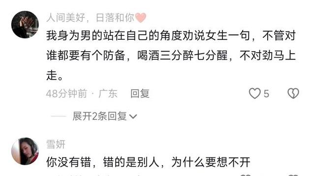 3、我为男的,站在自己的角度劝各位女生一句,不管对谁都要有个防备,喝酒三分醉七分醒,感觉不对劲马上走。