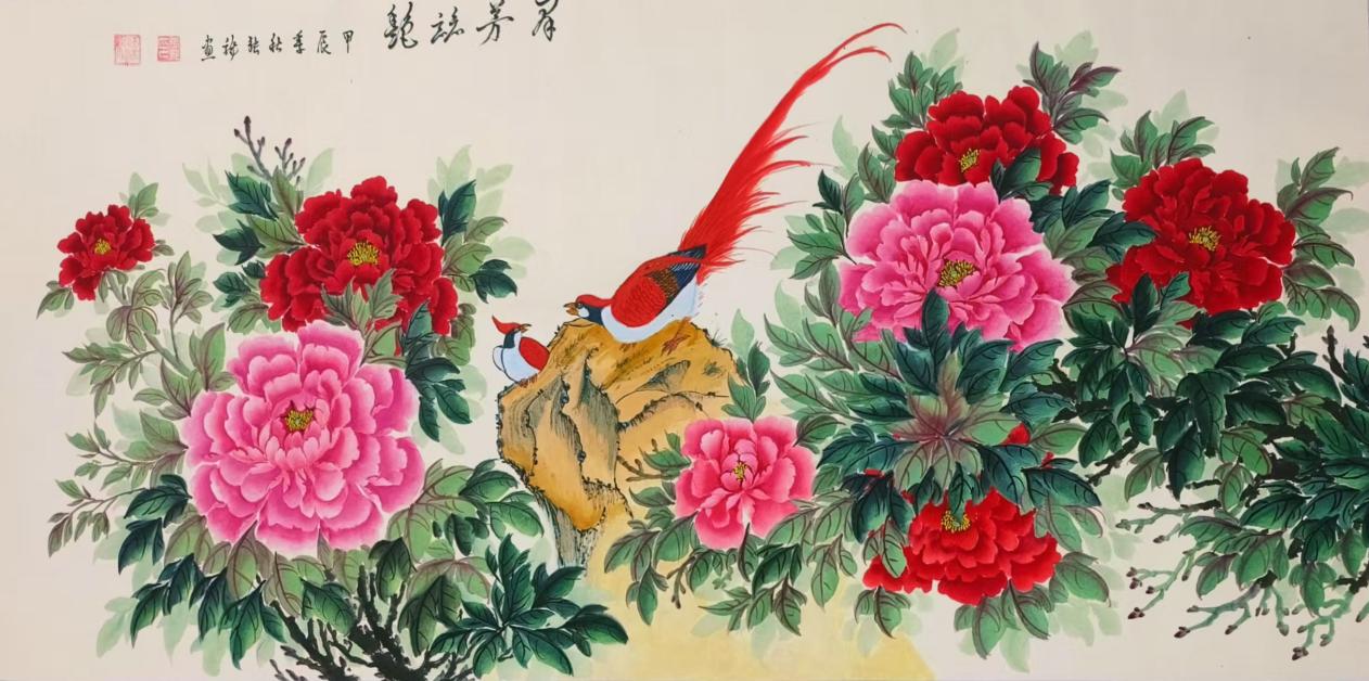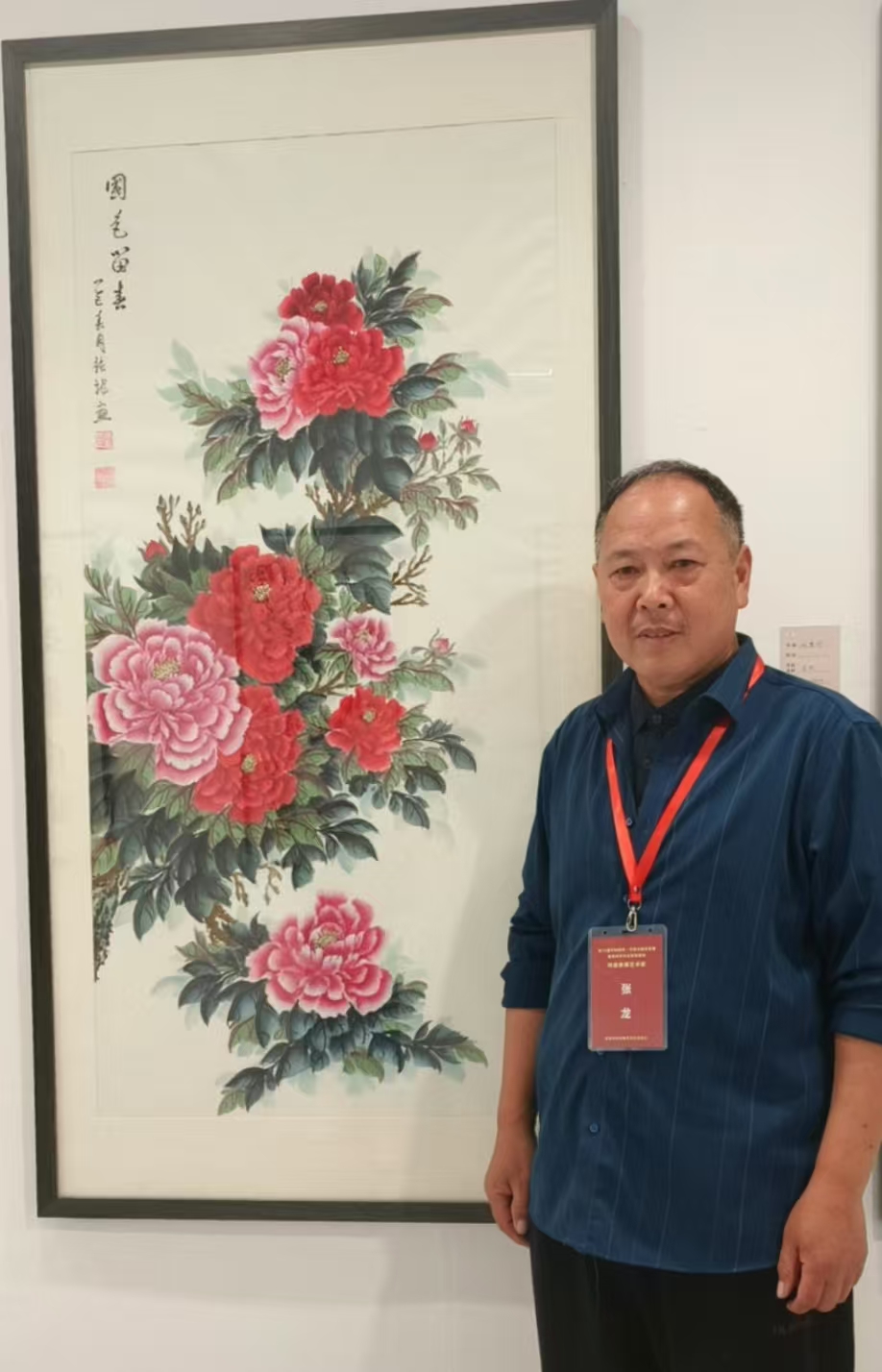 作为土生土长的固镇人,张龙先生自幼浸染家乡文化、将江进大地的灵秀风骨与固镇人的质林赤城,融入数十载书画创作,笔下牡丹既有国色雍容,更藏着故土的温润底色。他的作品屡获殊荣:《国色花魂》被央视总台收藏,《鸿运富贵》入藏中国宣纸博物馆,多幅佳作被赞比亚、土耳其等多国驻华使馆珍藏,更荣膺“中埃文化交流使者”“阿中文化交流使者”,以固镇儿女的身份,让牡丹艺术成为中外文化交流的纽带。