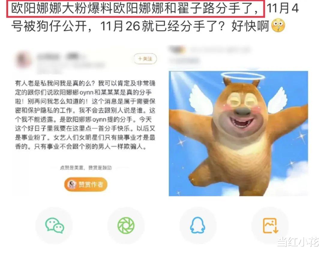 在这个节骨眼儿上传分手,还被曝是欧阳娜娜主动提的,很难不让人怀疑她是否在过河拆桥。