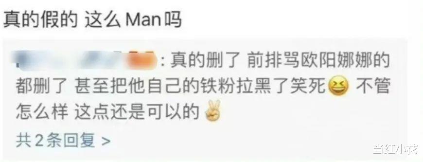 把前排攻击欧阳娜娜的评论都删了个精光,连持不同意见的铁粉也难逃其手。