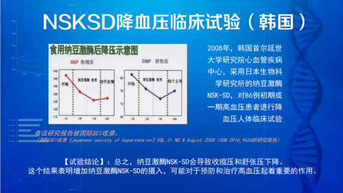 ▲ NSKSD纳豆激酶降血压(韩国)临床试验结果