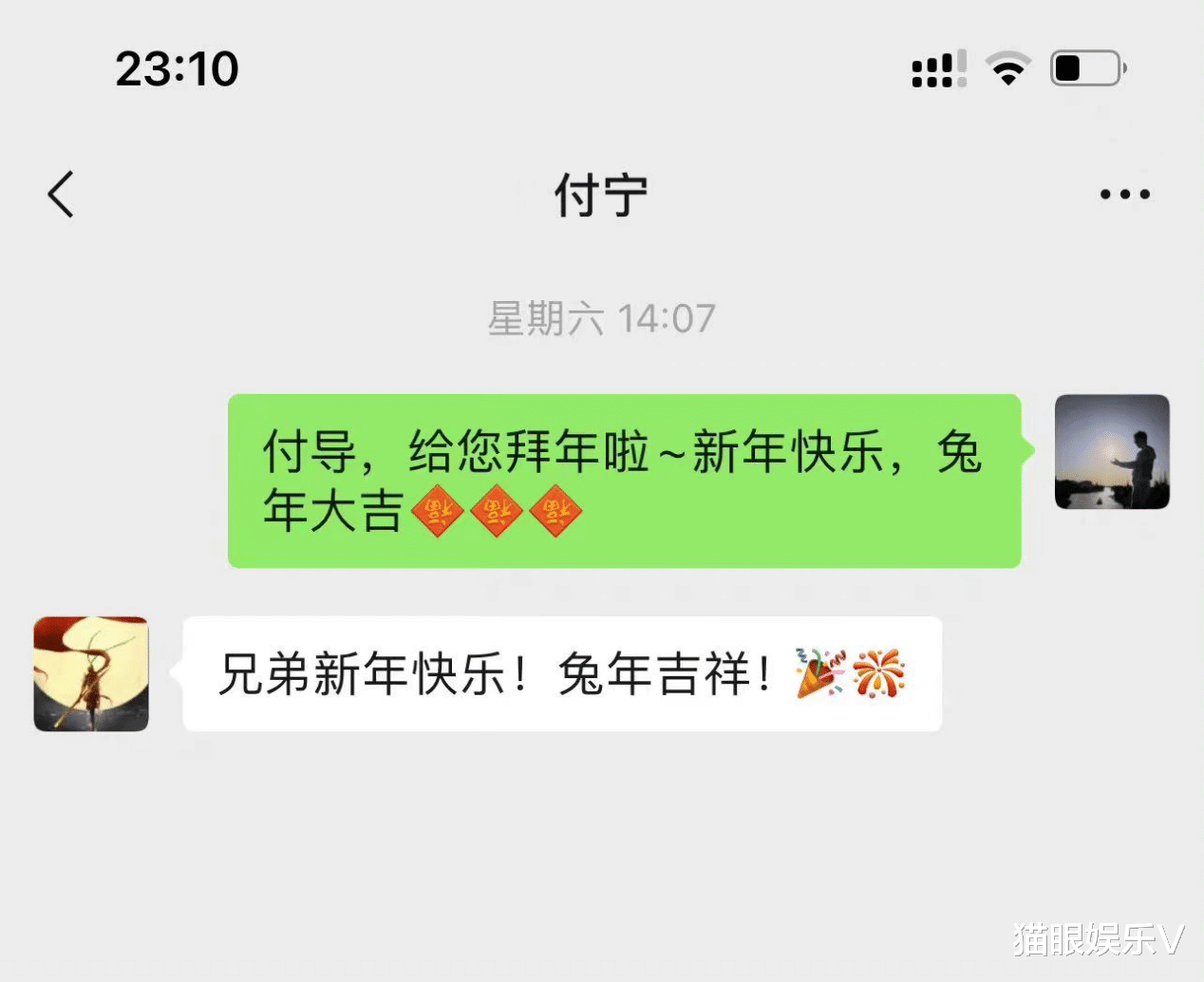 付宁导演生前还有过拜年的行为,他跟演员李亭哲在社交软件上拜年,两人相互祝福对方,兔年大吉。