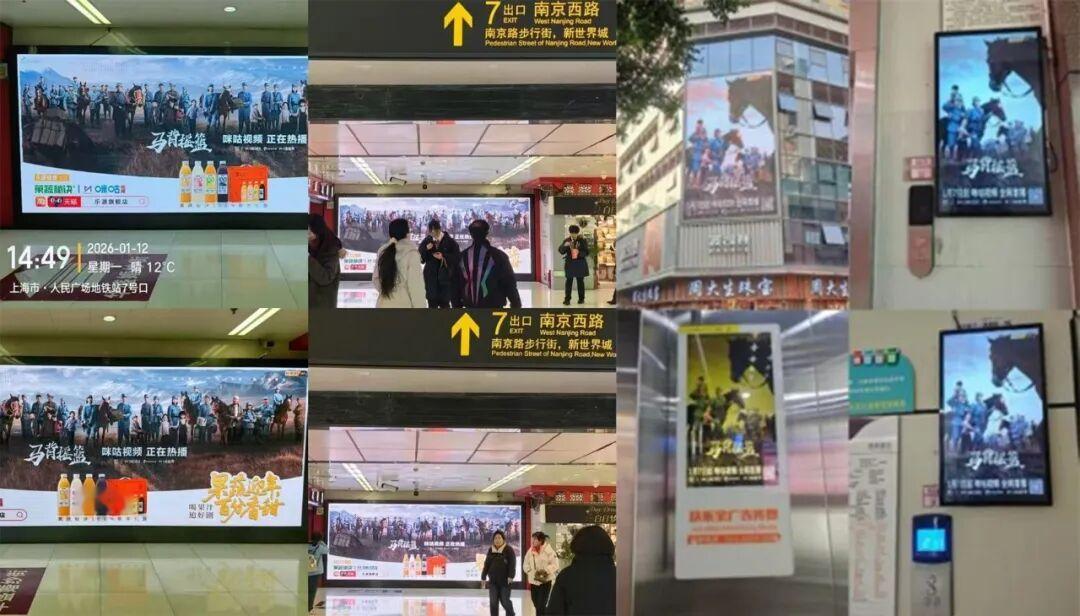 同步下沉至城市核心生活圈,联动上海人民广场地铁大屏、重庆中央俊豪大街大屏、万达广场大屏等线下触点形成亿级曝光网络,线上联动当贝投影、顺丰同城等高频应用开屏资源,实现数字场景全覆盖,打通从触达到观看的转化链路。