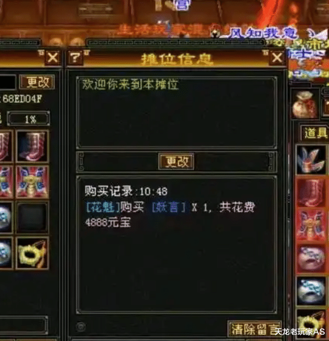 2022年,【一生宿敌】的一位名为花魁的玩家,刚花了4888元宝买了一个四属性七星戒指,一转头被爆刀就掉了......