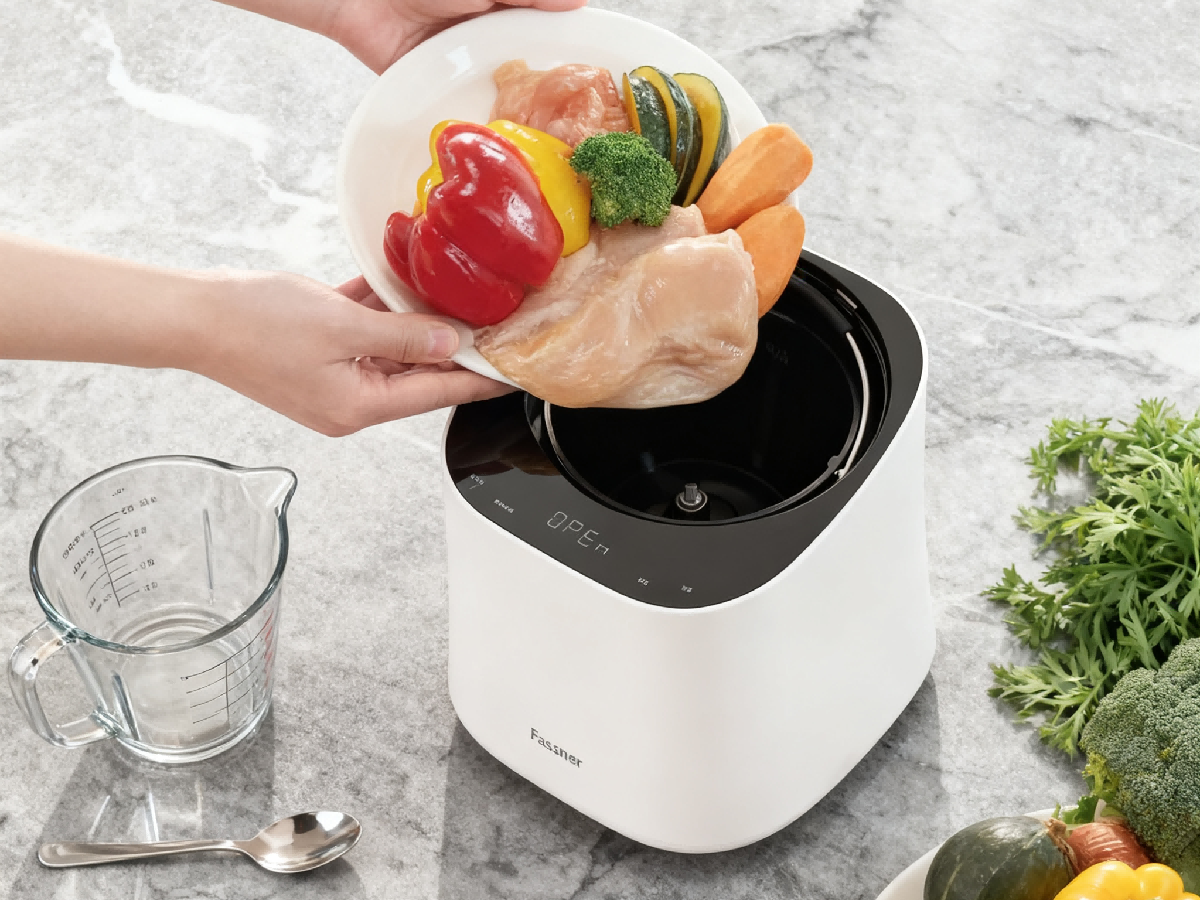 这款法思纳宠物料理机采用纯白磨砂设计,外观简洁又富科技感。功能全面,可实现蒸、煮、搅拌一体化制作。AI营养算法可智能控制温度与搅拌速度,使食材熟而不糊。支持整块食材直放,一键操作即可完成烹饪,轻松做出营养均衡的宠物鲜粮。
