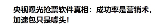 大象新闻2025年1月21日《央视曝光抢票软件真相:成功率是营销术,加速包只是噱头!》报道