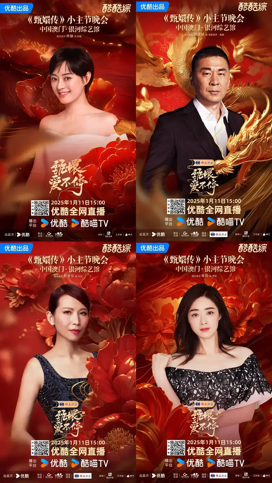 《甄嬛传小主节晚会》于2025年1月11日在中国澳门银河综艺馆成功举办。这场晚会由优酷出品,携手导演郑晓龙,集结了《甄嬛传》播出以来最齐全的原班人马,包括孙俪、陈建斌、蔡少芬、蒋欣等32位嘉宾,为观众带来了一场视听盛宴。晚会通过经典歌曲演唱、新人组合表演、深度访谈和互动环节,重现了《甄嬛传》的经典场景,让观众仿佛回到了那个充满宫廷斗争和情感纠葛的后宫世界。