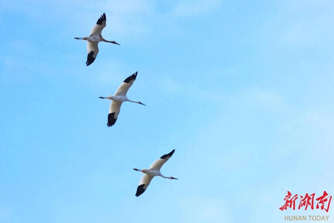 11月23日,益阳南洞庭湖自然保护区南县管理局工作人员在天星洲区域开展例行水鸟调查时,首次观测并记录到3只国家一级重点保护野生动物白鹤。