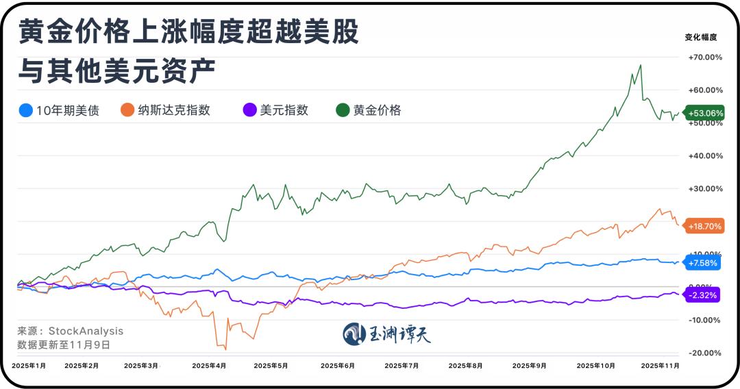 归根结底,这种流向其实是资金对美元信任的转移。过去,避险是买美元,现在,避险是买其他资产。配置黄金,其实是在重新配置信心。