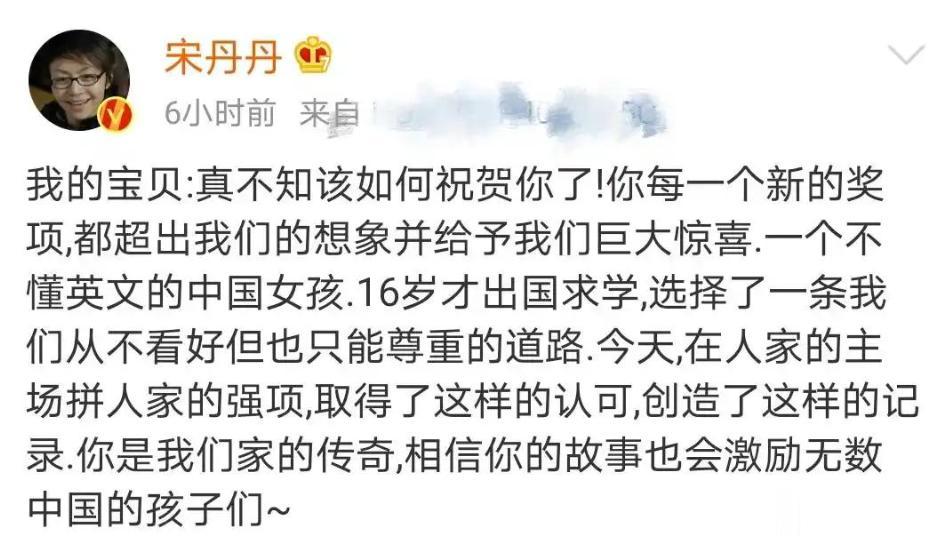远在国内的宋丹丹,心里全是藏不住的骄傲。
