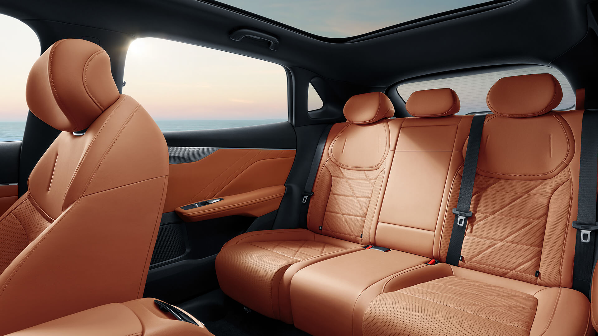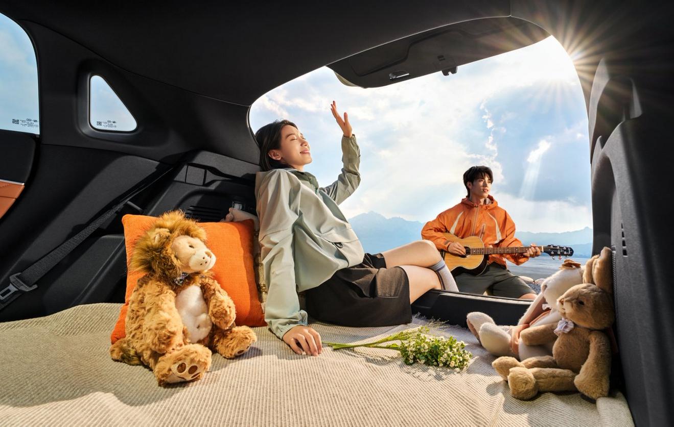 其次车内的后排空间可达964mm,即使是满员乘坐也不会拥挤,坐在车内后排的闺蜜也能够轻松活动腿部。不仅如此,车内的整体储物空间也很够用,像是492L双层后备箱、159L的前备箱设计能够满足放置健身包、高跟鞋的鞋盒等物品,如果还有午休需求,还可以放倒车内后排座椅让车内后排形成一个纯平的车内大床房。