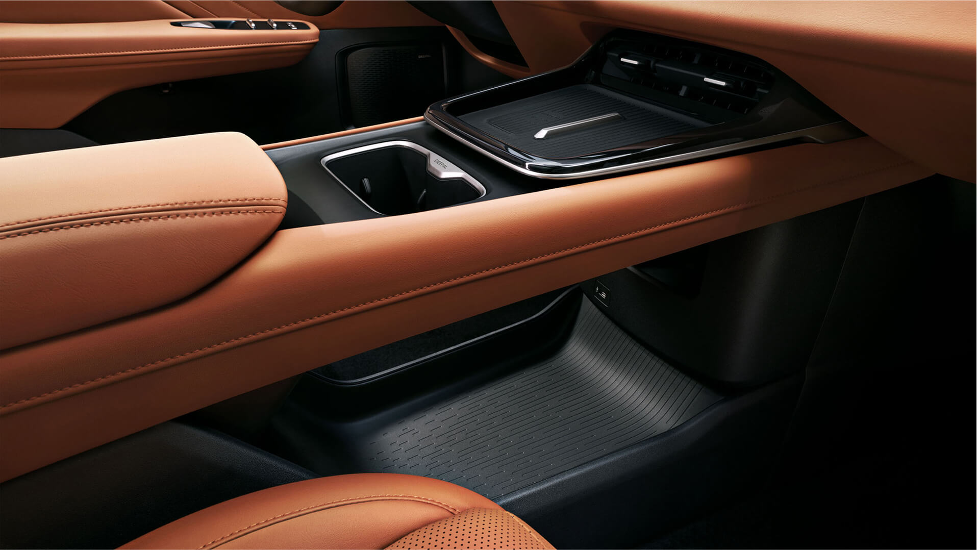 最后则是车内多达35处的储物空间了,像是岛台位置的水杯架放置水杯,下方的位置可放置日常通勤使用的包包等都非常方便,并且该车还给到了手机无线充电面板,仅需一放便可充电,无需在额外增加车载充电器和充电线,让车内更为简洁。