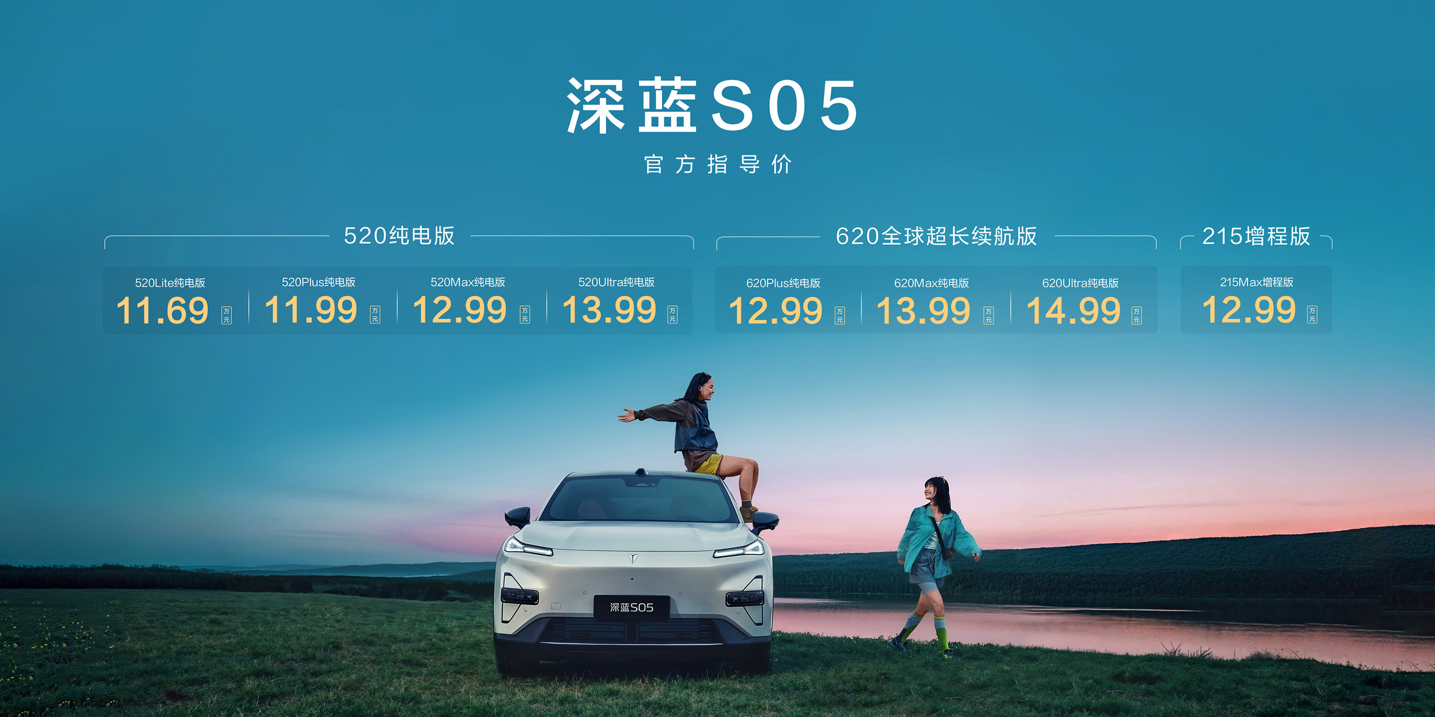 一、车型价格及购车优惠对于目前在售的2026款的深蓝S05而言,该车在售车型共计八款,其中包括了四款纯电续航520公里车型、三款纯电续航620公里车型以及一款增程动力车型,其官方指导价为11.99万元至14.99万元,整体的价格表现也较为适中。