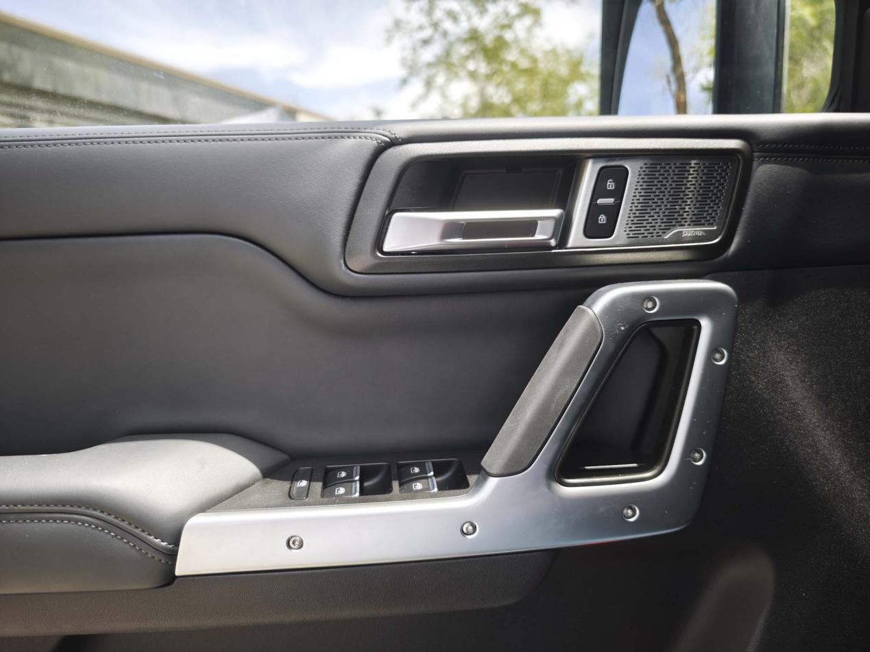 车尾部分的设计相对简单,平开式的后尾门以及裸露式的全尺寸外挂备胎,尾灯组采用纵向排列,这些都是硬派越野车普遍喜欢的设计。
