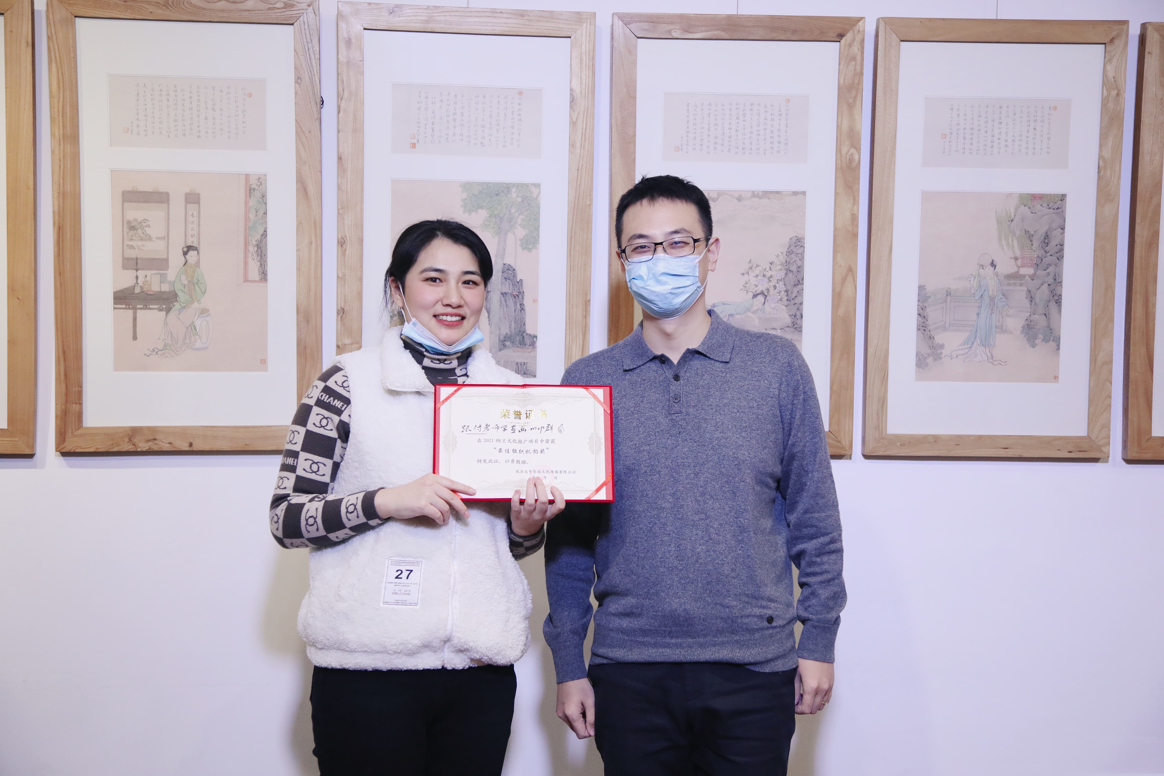 付爱民老师为参加2021纳兰文化推广的小朋友颁奖