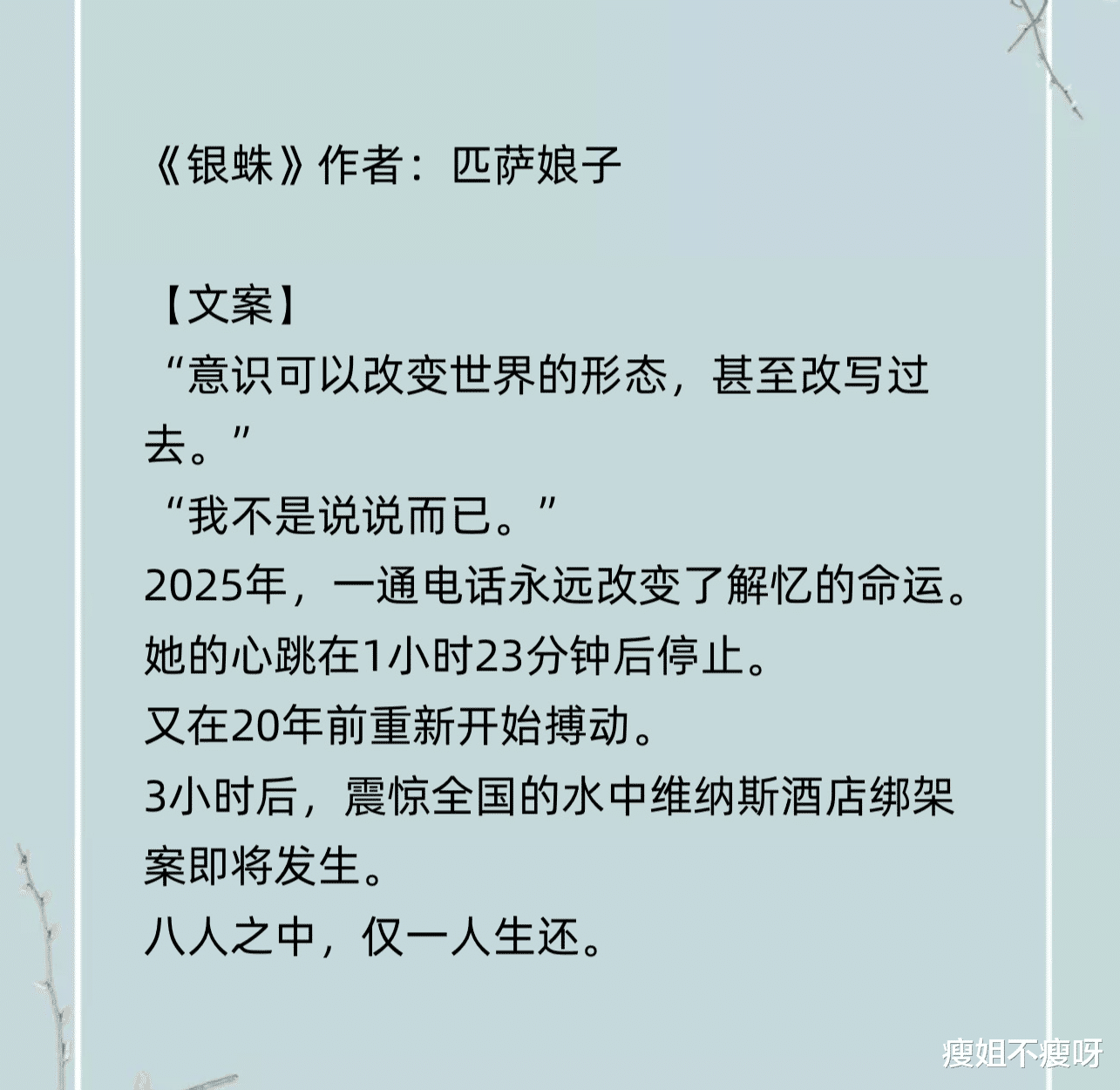 小说从头到尾贯彻的论点是“强烈的意识可以改变过去”,所以绑架案结束时,女主强烈的希望母亲能幸福的意识也诞生了新的时间线——新世界中,女主父母健在,她移植手术成功,健康生活,那些人也得到了各自的审判。唯一可惜的是,男女主相见不相识,还有20岁的年龄差。可那又怎样,他们都有在好好活着。