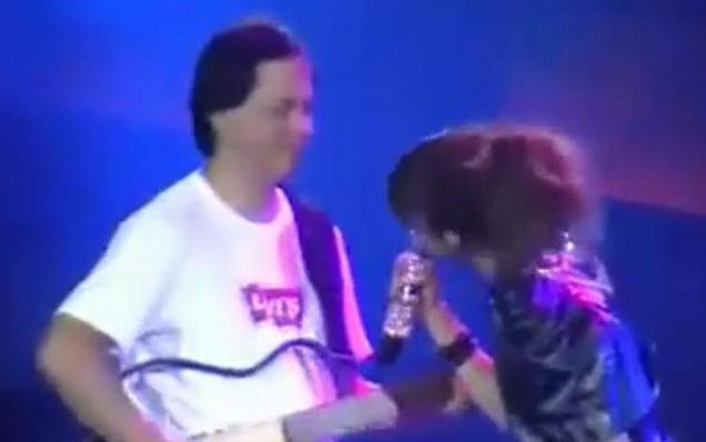 在最后,站在舞台上的陈慧娴更是和身后屏幕上大喊“拜拜”的梅艳芳来了个“对视”。