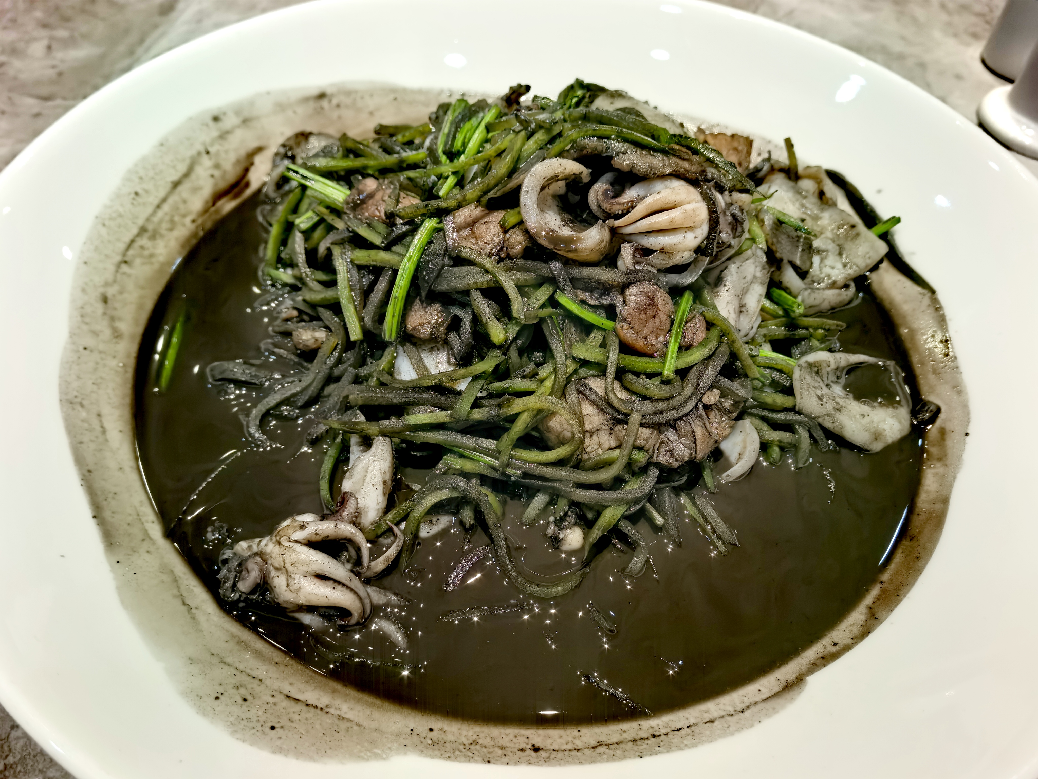 墨鱼萝卜丝,黑白分明。墨鱼圈弹嫩如软玉,萝卜丝脆爽若冰丝,酱香醇厚,是沉稳的开篇。