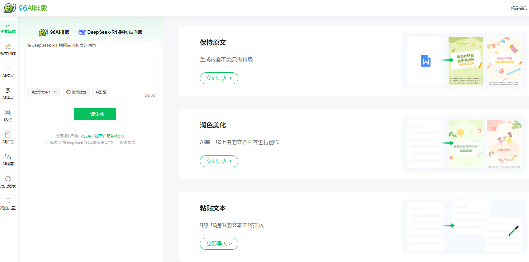 2. 96编辑器特色功能:AI排版与Markdown的极致体验作为96编辑器的特色产品,其AI排版和Markdown编辑器提供了更专业化的解决方案: