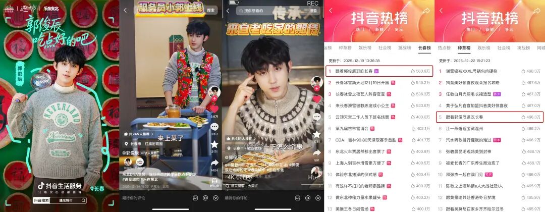 演员郭俊辰开启系列栏目「郭俊辰吃点好的吧」,首站落地家乡长春,因其地道的本地人视角,被当地文旅授予「长春冰雪推荐官」称号。栏目内容从老乡身份出发,深度联动本地特色商户,相关话题播放量迅速突破500万,多次登上热搜榜。通过一系列真实、接地气的内容,郭俊辰“踏实、亲切、懂生活”的个人形象变得更加鲜明立体,有效将他的影响力从影视领域拓展至生活方式领域,积累了独具特色的个人生活化标签和粉丝好感度。