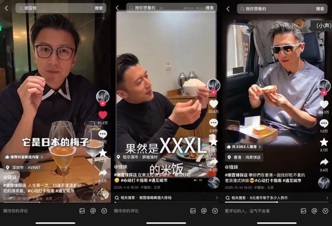 在「遇见城市」IP中,谢霆锋重启了经典探店系列,用专业美食家的眼光发掘街头巷尾的隐藏美味,他的寻味IP「谢霆锋探店」分享了一系列兼具专业度与烟火气的探店内容,深化了其“饕餮鼻祖”的地位,也拓宽了个人IP的内涵与深度。