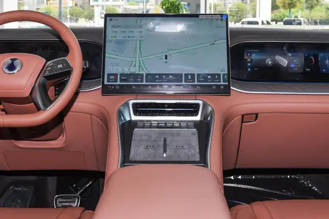 中控那里叫 “一体式星穹智控岛”,跟太空舱似的,有 13.2 英寸的全液晶仪表盘、17.3 英寸的中控屏和 13.2 英寸的副驾娱乐屏。屏幕显示特别清楚,我特意凑近看了看,没有任何颗粒感,操作也流畅,一点都不卡顿,跟咱们平时用的高端平板电脑差不多。我之前试驾过一款车,中控屏操作起来特别卡,点个功能半天才有反应,急得人直上火,腾势 N9 就完全不会有这种情况。