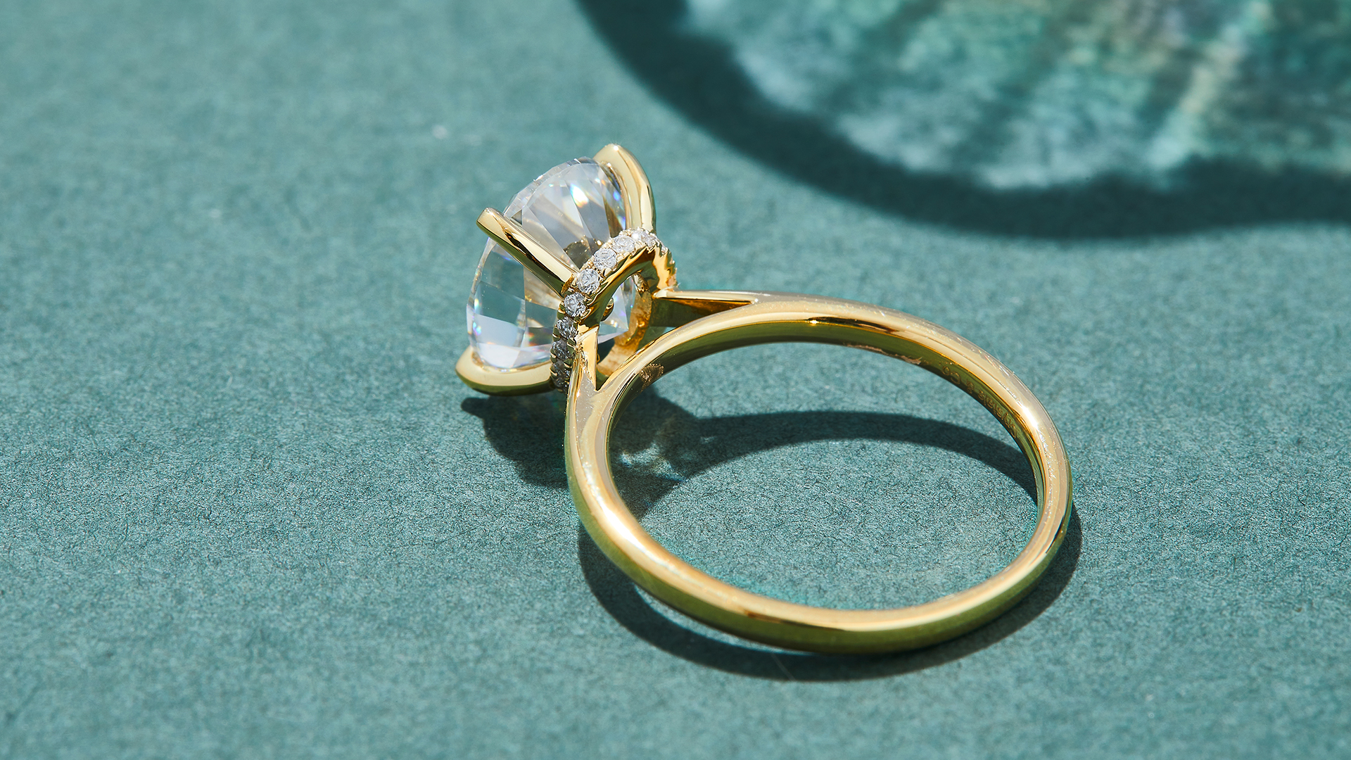 戒托材质配高硬度:多选 18K 金或铂金 ——18K 金硬度高,能牢固固定大钻石(避免脱落);铂金质感温润,和无色钻石搭配更显高级,不会因金属颜色抢戏。