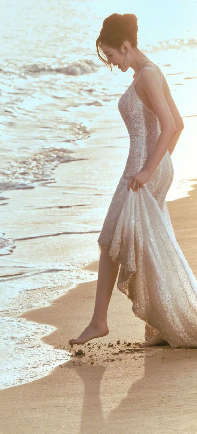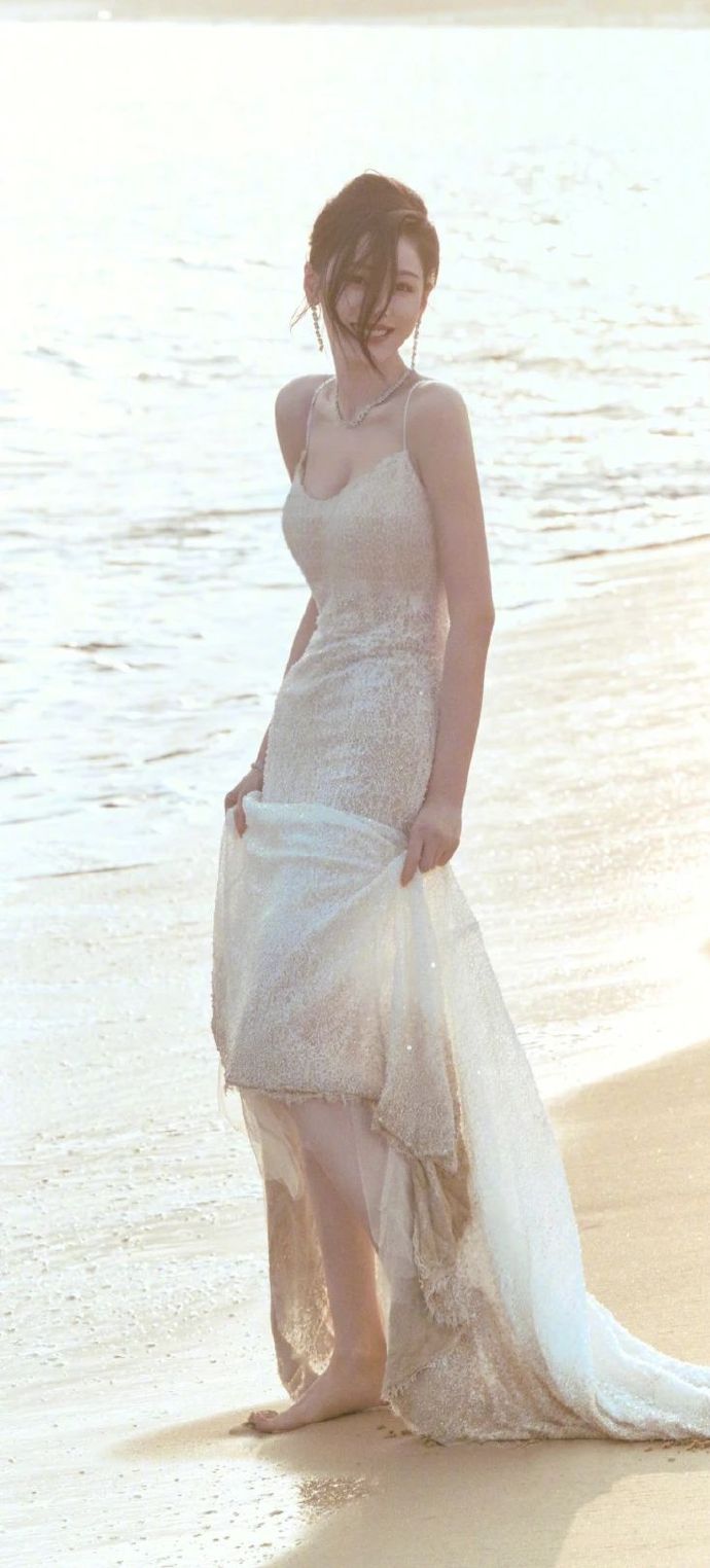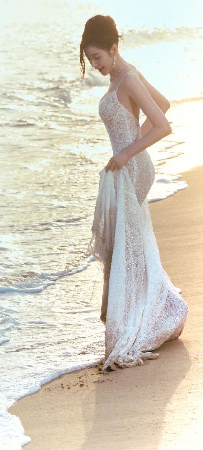 张天爱身着一袭白色蕾丝半透明连衣裙,曼妙身姿尽显,在海边翩然绽放。轻柔的蕾丝随风轻舞,勾勒出她的曼妙身姿。夕阳余晖洒落,为她镀上一层温柔光晕。海浪轻拍沙滩,她似海边精灵,灵动而迷人,每一幕都美得令人心醉。