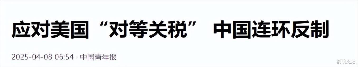 特朗普回应股市崩盘:暗示自己是“故意” 喊话美国人民“挺住” 《海外网》应对美国“对等关税” 中国连环反制 《中国青年报》