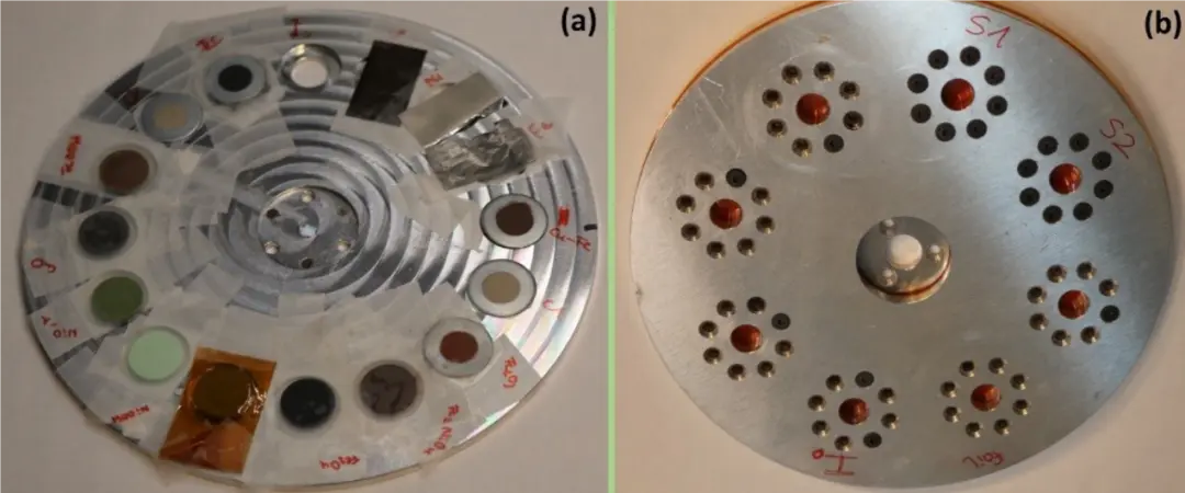 :Kapton(便于安装和取下,用于多种参考测量),或直接粘贴无胶带的自支撑晶片(操作需小心),对空气敏感的参考材料在密封在气密样品支架(如设计的气密轮形支架,可装入多个样品,样品置于两层箔间,通过 O 型圈密封,安装在气密轮金属滑块间,螺丝可在取出后密封隔绝空气)。