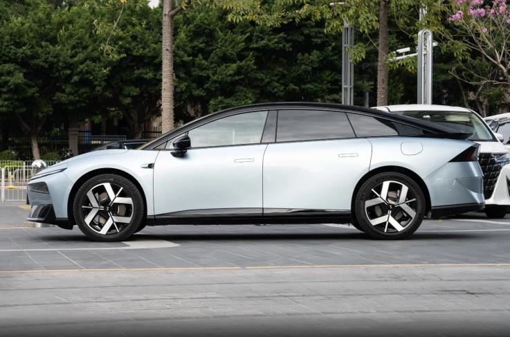 再看新车侧面的数据,长宽高对应向5071x1937x1512mm,轴距3000mm。作为一款中大型轿车,小鹏P7+增程版标配19英寸运动轮毂,并提供20英寸轮圈的选配。四个车门均配备电吸门,在日常使用中会比较显高级。