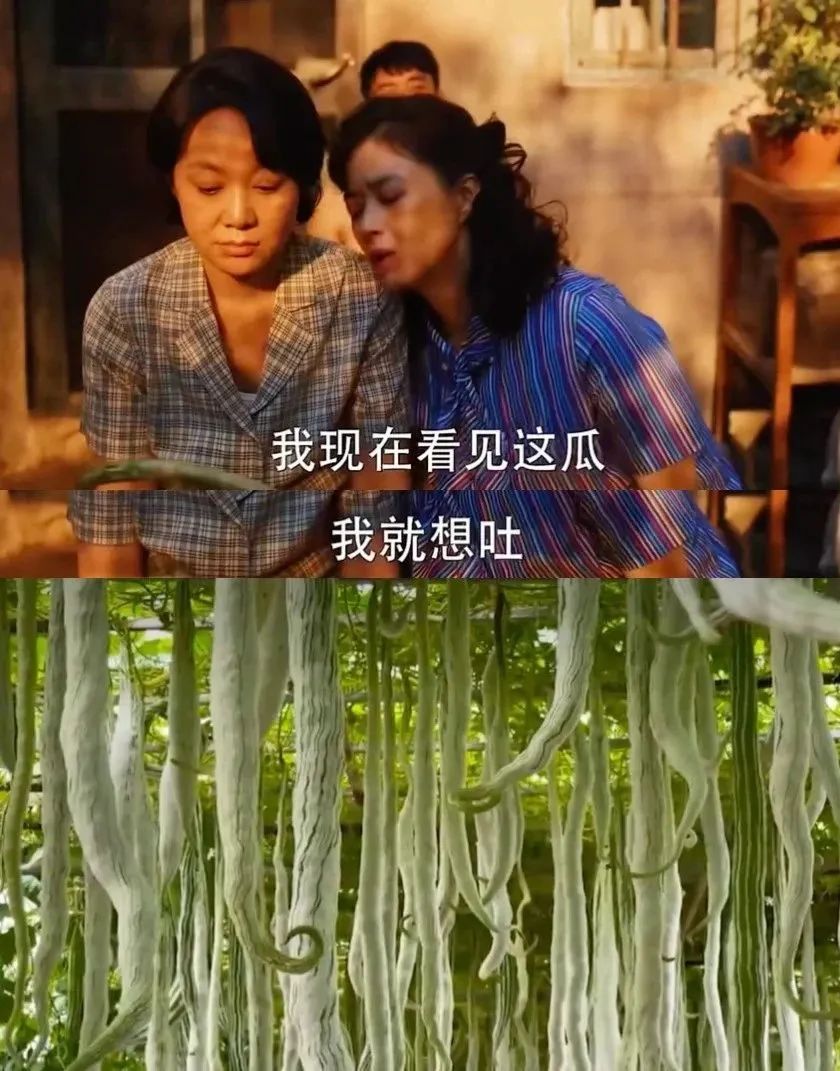 在剧中,因为家里有长身体的娃,粮食定量都不够吃,于是黄玲去找人要来了蛇瓜的种子。