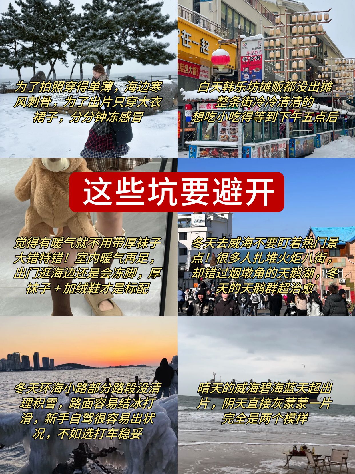 姐妹们!这次冲威海居然偶遇了小雪花❄️!雪虽然不大,但配上海边的大风是真的冷,吹得我鼻子都通红🥶!这份亲身实测的游玩指南,想来玩的姐妹直接闭眼冲,放心抄作业💥