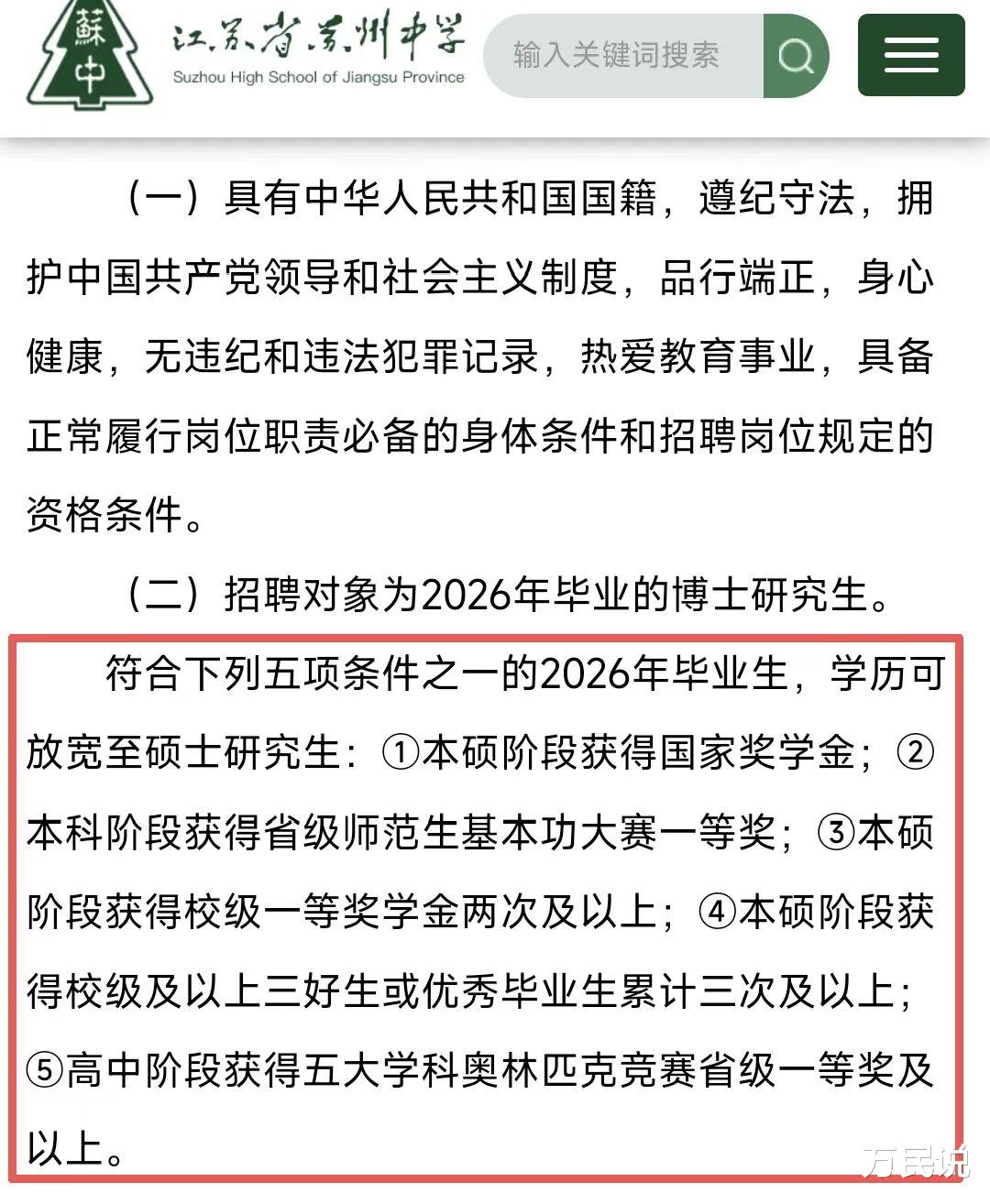 另一份来自苏州中学:拟聘的15名新教师里,清北毕业生将近一半,且一大半都是博士。
