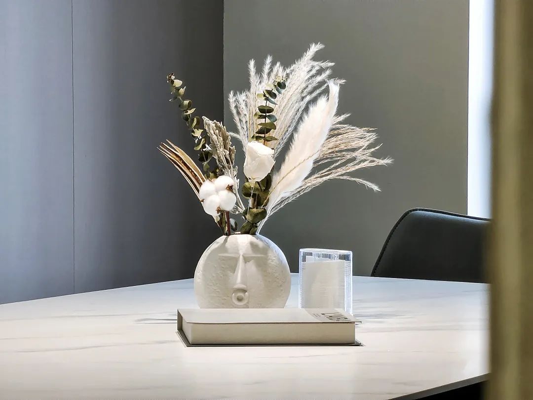 温和的色调与暗藏的灯线悄然碰撞,呈现舒适的视感,水磨石台面及精致的摆件,简约的外表下是『精致』的生活。