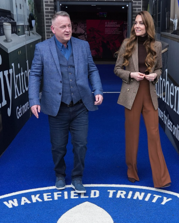 尽管英国王储威廉没有来,但凯特王妃依然受到热烈欢迎;从后面看44岁凯特,扎着单麻花辫的背影照太显嫩了,和陪同的工作人员走在一起,王储妃的造型很有辨识度。