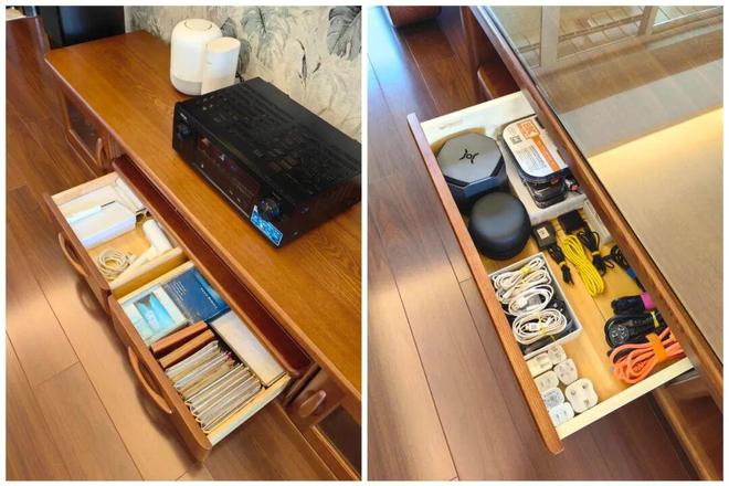 抽屉收纳并不一定需要收纳盒辅助,把各类物品摆摆好,自然就整整齐齐,一目了然了。