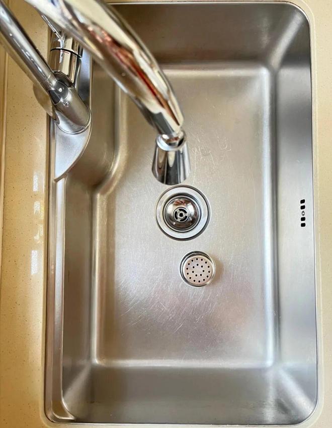 水槽不用刻意清洁,每次用洗洁精刷完碗后,顺手用鱼鳞抹布擦干,它就可以这么亮,水龙头也是如此。