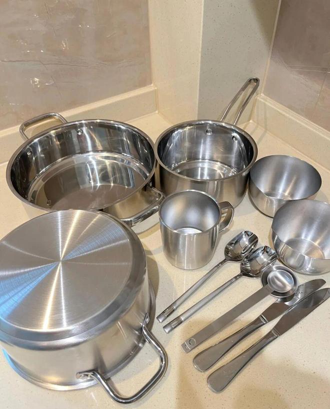 不锈钢材质的锅碗瓢盆,每次用完后就用金刚纱海绵擦一擦,它永远就和出厂设置似的,根本就不用担心会发黄发黑。