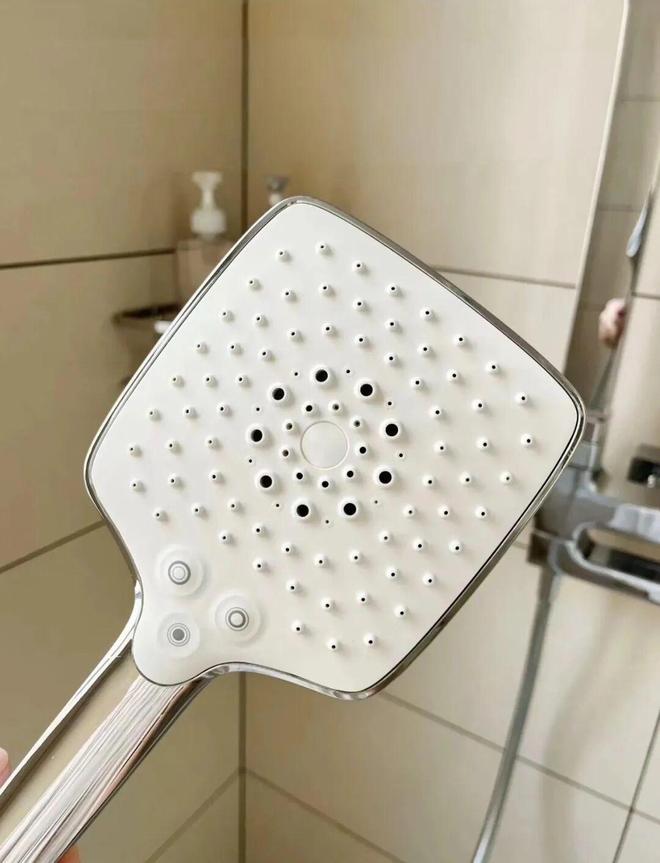 花洒出水口被水垢堵住了,可以用柠檬酸或者白醋泡一泡,再拿个针或牙线戳一戳出水口,水流又变大了。