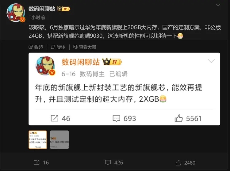 该博主此前还曾爆料,“咳咳咳,6月独家暗示过华为年底新旗舰上20GB大内存,国产的定制方案,非公版24GB,搭配新旗舰芯麒麟9030,这波新机的性能可以期待一下”。而从行业角度来看,该机也将是目前行业唯一配备该运存的机型。另据爆料,除了影像之外,Mate 80系列这次会全系支持3D人脸识别,同时还配备侧边指纹。