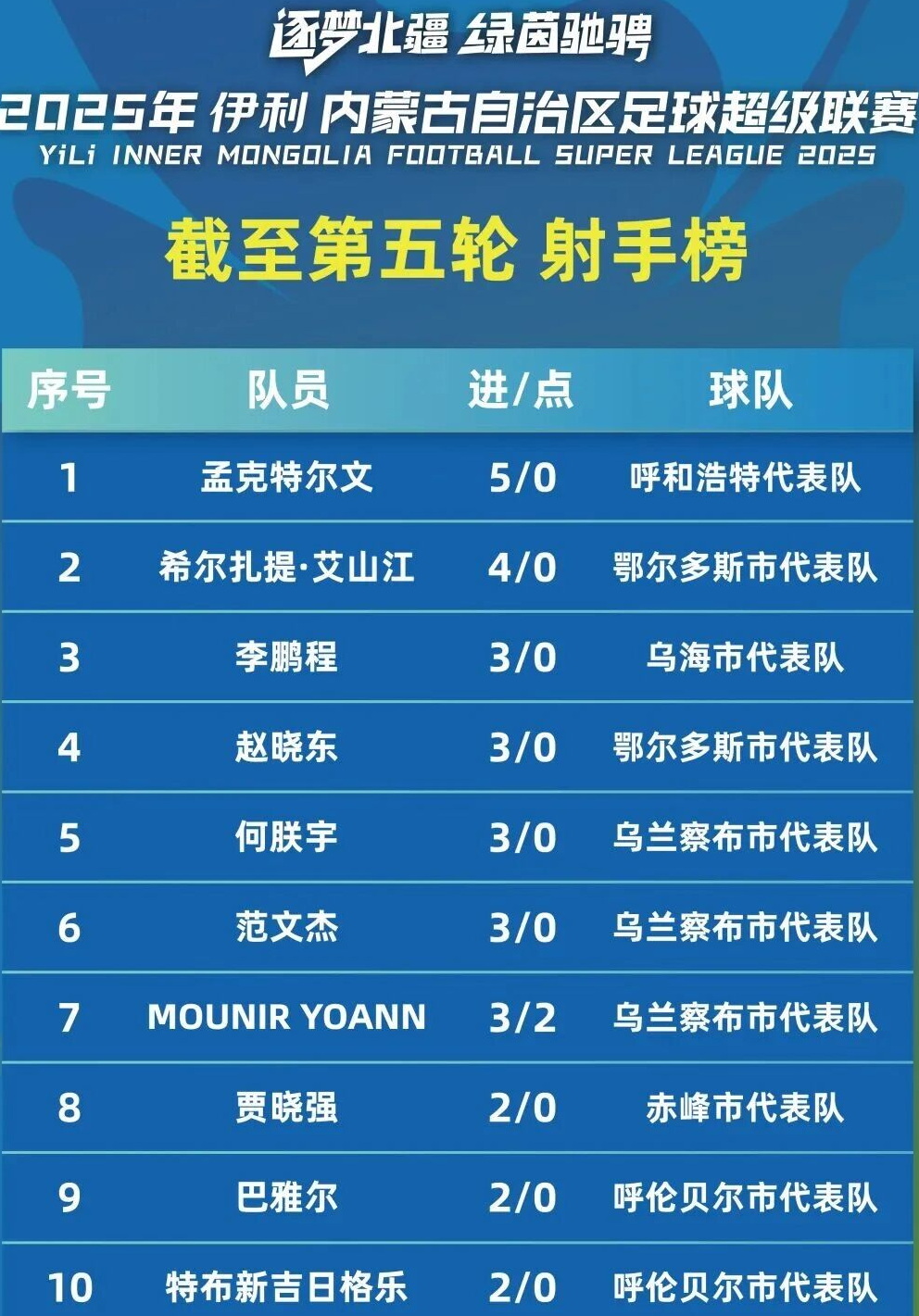 蒙超(2025内蒙古自治区足球超级联赛)第5轮全部打完,鄂尔多斯继续高歌猛进,乌兰察布和呼和浩特打平,看蒙超最新积分榜。A组包头vs通辽看点颇多,通辽球员连续上演“无间道”,包头终于进球。而通辽进球被吹掉,比赛一度短暂中断!