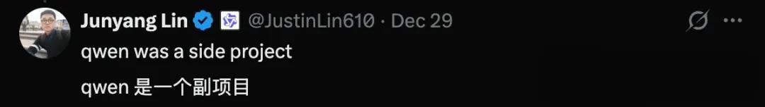通义千问技术负责人林俊旸在上公开:Qwen was a side project。
