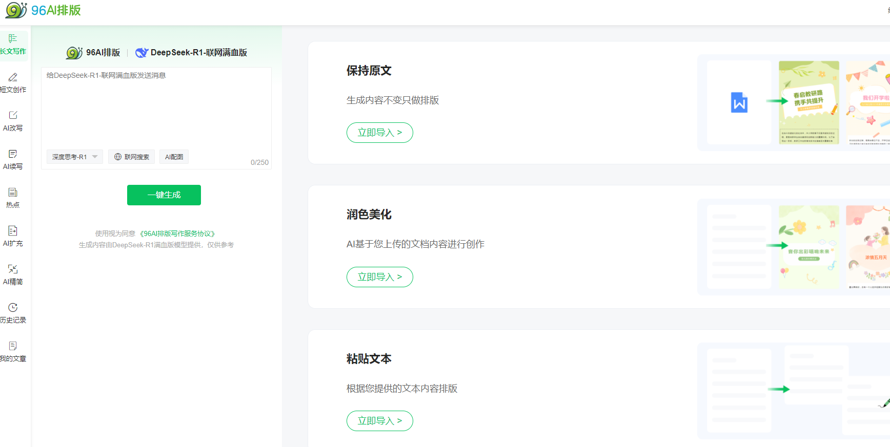 96AI排版:专注于AI内容生成与排版的独立产品,可从灵感生成到排版优化提供一站式解决方案。