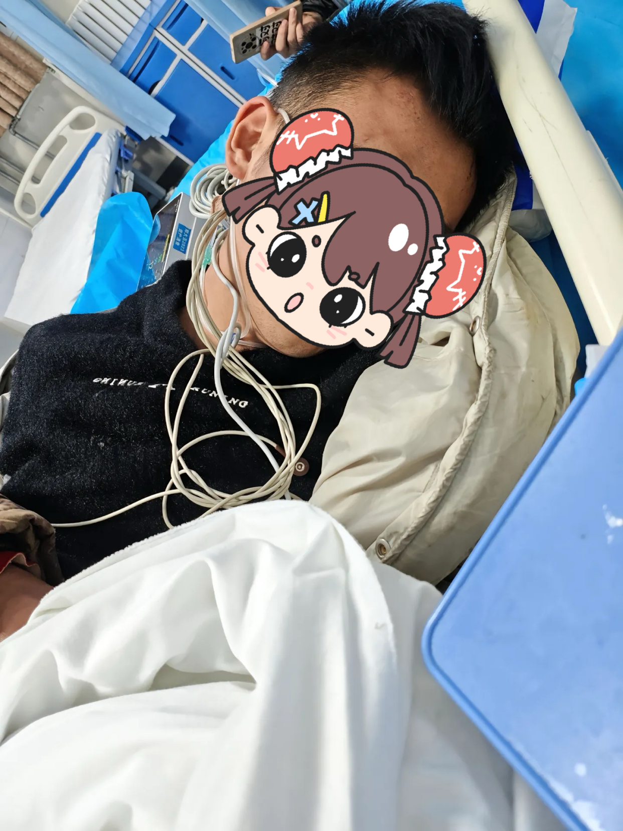 到了医院,她看到男子躺在医院的病床上,鼻子里吸着氧气,身上还有心电图仪器,同时还打着点滴。
