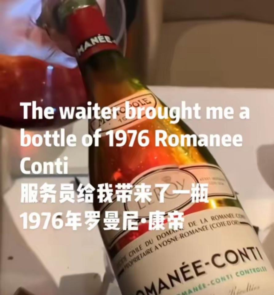 为了表示感谢,餐厅还送了她一瓶1976年的罗曼尼·康帝红酒。