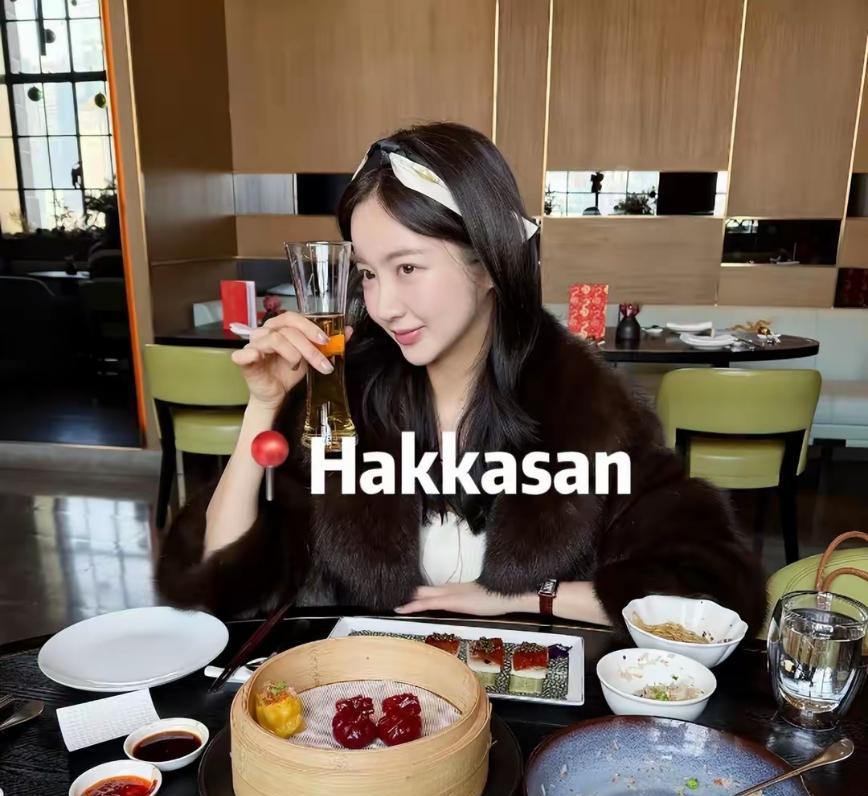 到了餐厅后,恩惠并没有刻意凹造型拍照,只是简单地举起手中的杯子,却显得气质非凡。
